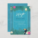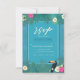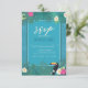 Carte RSVP colorée avec un cadre turquoise bordé d'un toucan audacieux assis entre des fleurs d'hibiscus aquarelle et des feuilles de palmiers. Reverse a également un motif de feuille de palme répétitif dans les nuances de turquoise. Ces cartes tropicales sont parfaites pour l'été, la plage et les mariages tropicaux, anniversaires et autres événements. Recherchez ID577 pour voir les produits correspondants.