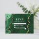 Elégante aquarelle moderne Emerald Vert et Or Marbre Agate Géode Mariage RSVP Card
