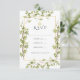 Feuille bat mitzvah à la sauge tendance vert et blanc aquarelle rsvp avec cadre géométrique or.