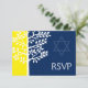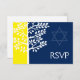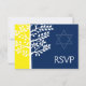 Carte de réponse RSVP de Life Bar Mitzvah moderne jaune et bleu marine Arbre de vie.