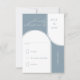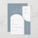 Carte RSVP de mariage moderne avec arcades et élégante calligraphie script. Design minimaliste mais frappant en bleu et blanc poussiéreux. Les invitations coordonnées, la papeterie et le décor de jour de l'événement se trouvent dans ma collection Couleurs Mariages. Si vous souhaitez des couleurs différentes ou des modèles supplémentaires pour les produits correspondants, s'il vous plaît m'envoyer un message pour les ajouter pour vous.