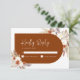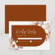 Carte de réponse pour EVJF bohème en terre cuite orange brûlé et blanc. Beau design moderne avec accents botaniques peints à la main. Comprend de l'herbe de pampa, des feuilles de bananier séchées et des roses. Thème désertique bohème tendance parfait pour l'automne, l'hiver, le printemps ou l'été. Parfait pour une célébration de baby shower de mariage élégante.
