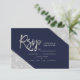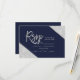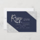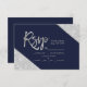 Parties scintillant d'argent bleu marine typographie mariage Rsvp, la typographie d'argent sur personnalisable bleu marine couleur parties scintillant bloc et faux argent bandes géométriques chic mariage rsvp, parfait pour mariage élégant,