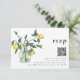 Ces magnifiques cartes de réponse de RSVP de mariage présentent une luxuriante composition de verdure de citron aquarelle dans un pot, de couleurs jaune et vert. Un look floral élégant de citrons d'été sur un fond blanc simple, avec une typographie moderne tourbillonnante. La carte de RSVP combinée comporte un code QR sur le devant, ainsi qu'une carte de RSVP traditionnelle au verso pour les invités qui préfèrent renvoyer leurs cartes par la poste.