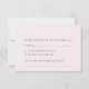 Cette carte de réponse élégante est dotée d'un Arrière - plan Pale Blush Light Pink Plain Solid, créant une esthétique douce et romantique. La texture lin ajoute une touche de sophistication et de glamour au design, ce qui le rend parfait pour une célébration mariage. La carte de réponse de la mariée est magnifiquement présentée sur fond de toile de fond, créant un arrière - plan solide au sol étonnant qui impressionnera sûrement les invités