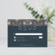 Indulge in the enchantment of the past with our vintage floral wedding response card without dinner options. Inspired by the iconic patterns of William Morris, this design feature a mesmerizing blend of teal blues, pinks, creams, and green. The intricate floral patterns, reminiscent of the Art Nouveau era, this design adds vintage allure to your special day. The elegant vintage font on a dark blue background provides a striking contrast to the vibrant floral backdrop. This timeless design captures the essence of classic romance, making it the perfect choice for couples seeking a truly unique and unforgettable invitation. Created by Simply Farmhouse Press.