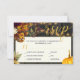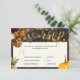 Fleurs d'automne rustiques et carte de réponse faire-part de mariage citrouille avec options de repas sur un arrière - plan en bois de grange brun foncé.