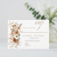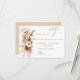 Cette carte RSVP allie charme rustique et élégance classique, avec des fleurs douces dans les tons beige, blanc et marron chaud qui évoquent un jardin de fin d'été. L'aménagement est propre et traditionnel, invitant les clients à répondre d'ici une certaine date avec des options d'acceptation ou de refus, indiquer le nombre d'participants et sélectionner un repas. La ligne "M______________" ajoute une touche formelle, tandis que le design général est chaleureux, raffiné et facile à naviguer, ce qui en fait un bon ajustement pour une célébration mariage intemporelle. Personnalisez avec vos propres informations.