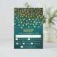 Cette carte rsvp de mariage rustique et grunge est offerte avec un choix de repas pour les invités et dispose de feuilles d'or sur un arrière - plan turquoise bleu en détresse. Le texte combine les polices italique et serif pour un look moderne et élégant. Ce sera parfait pour les mariages de automne d'automne.