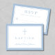Baby Blue Religious Cross Boy Baptism RSVP Card.