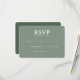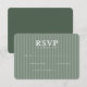 Cette carte de réponse de mariage présente un design moderne et minimaliste avec des bandes vertes claires et foncées alternées dans une palette de sauge apaisée. La mise en page épurée comprend une typographie serif élégante qui guide les invités à travers les options de réponse, créant une atmosphère formelle mais accueillante. Parfaite pour les mariages contemporains, cette carte allie simplicité et sophistication, assurant clarté et facilité d'utilisation tout en maintenant un ton invitant.