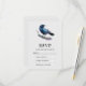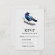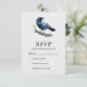 Une carte RSVP avec un joli dessin aquarelle d'un corbeau. Le bleu foncé et les couleurs violettes vives accentuent la beauté de cet oiseau.