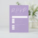 Cartons Réponse Beau Lilac violet blanc Mariage vertical