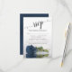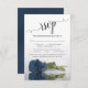 Cette belle carte RSVP présente un design simple mais élégant avec un seul rose bleu acier à long tige réfléchissant dans un bassin d'eau avec des ondulations et des vagues. Le titre est écrit en calligraphie en dentelle et il y a de l'espace pour que vos invités indiquent le nombre total de participants et leur choix de repas.