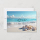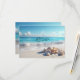 Jolie image d'une plage avec du beau sable blanc, des vagues ondoyantes et de l'eau turquoise, carte de réponse Coquilles Saint-Jacques et Étoiles de mer.