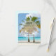 Une carte RSVP avec une belle photo tranquille de 2 palmiers sous un ciel bleu vif. Situé sur une plage tropicale isolée avec une eau turquoise et calme.
