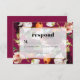 Un design élégant et soigné de carte de réponse mariage avec un mélange de belles fleurs d'été sur un arrière - plan magenta et une typographie noire personnalisable sur un arrière - plan transparent blanc et cadre or. Le langage des fleurs, connu sous le nom de floriographie, attribue des significations différentes à différents types et couleurs de fleurs. Par exemple, les roses représentent l'amour ; les bégonias symbolisent l'harmonie ; les dahlias signifient l'engagement ; le ranunculus représente le charme ; et les snapdragons signifient la grâce.