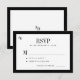 Timeless modern retro vintage elegant luxury old money black and white wedding RSVP card with stylish formal typography and bride and groom's monogram initials.