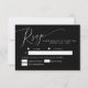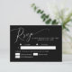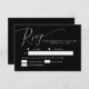 Carte RSVP de mariage élégante et minimale avec un texte de script moderne en haut sur un arrière - plan noir. Ce design simple fonctionnera pour n'importe quelle saison. La carte comprend également des options de choix de repas pour les clients à choisir parmi.