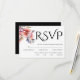 This elegant wedding RSVP response card showcases a blend of refined black lettering and a rhododendron branch embellished with peach-pink blooms. The term "RSVP" is elegantly presented in ornate lettering, lending a charming touch to the overall design. The back of the card is kept simple yet stylish with a solid black color, creating a striking contrast to the floral elements on the front. Perfect for a modern and chic wedding celebration, this invitation exudes a sense of timeless elegance and sophistication.