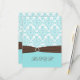 Cartons Réponse Bleu aqua, damas blanc avec ruban marron FAUX