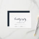 Élégant texte bleu foncé et arrière - plan blanc avec des points métalliques faux délicats à l'avant, et carte de réponse mariage bleu foncé clair au dos.