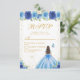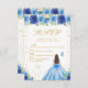 Cette carte rsvp sweet sixteen élégante et glamour présente une belle princesse aux cheveux brunes et à la peau claire en robe bleue. Le texte combine écriture manuscrite et polices sans serif modernes pour un look élégant et sophistiqué. Les compositions florales, les papillons et les confettis d'or créent un mélange parfait de rustique et de chic. Graphiques par www.etsy.com/uk/shop/SunflowerDayLove