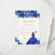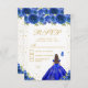 Cette carte rsvp sweet sixteen élégante et glamour présente une belle princesse aux cheveux brunes et à la peau claire dans une robe bleue royale. Le texte combine écriture manuscrite et polices sans serif modernes pour un look élégant et sophistiqué. Les compositions florales, les papillons et les confettis d'or créent un mélange parfait de rustique et de chic. Graphiques par www.etsy.com/uk/shop/SunflowerDayLove