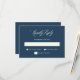 Cette carte de réponse RSVP mariage bleu foncé et élégante présente un style classique et ancien avec une calligraphie romantique en ivoire. Donnez le ton à votre mariage de luxe et raffiné d'inspiration italienne avec ce design élégant et minimaliste.