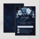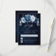 Élégante carte de réponse RSVP de mariage sur le thème Bleu poussiéreux et Nuit avec un élégant bouquet de fleurs de rose ardoise, de bourgeons de fleurs Bleu poussiéreux et de feuilles d'eucalyptus bleu. N'hésitez pas à me contacter pour toute aide de personnalisation ou si vous avez besoin d'un autre produit avec ce design.
