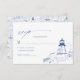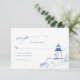 This elegant New England coastal wedding RSVP card features a hand drawn toile-style lighthouse and delicate calligraphy script.