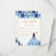 This elegant and glamorous sweet sixteen rsvp card features a beautiful princess with brunette hair and fair skin in a blue ball gown. The text combines handwritten script and modern sans serif fonts for a classy and sophisticated look. The floral arrangements, butterflies and gold confetti create the perfect blend of rustic and chic.