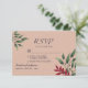Cette élégante carte automne RSVP est dotée d'un arrière - plan moelleux et blush, agrémenté d'un feuillage bordeaux et vert. Le design s'accorde parfaitement avec les thèmes de mariage d'automne et d'hiver, ce qui permet à vos invités de répondre facilement à leurs préférences de fréquentation et de repas. Personnalisez avec vos noms, la date RSVP et les détails d'une suite de papeterie cohésive. Cette carte de réponse est joliment jumelée à des invitations de coordination, des cartes de détails et une signalisation mariage pour une collection complète de mariages de automne. Un choix chic et pratique pour les couples qui aiment les couleurs de saison riches et l'élégante papeterie mariage florale. Si vous avez besoin d’aide pour personnaliser, n’hésitez pas à me contacter - Je suis heureux de vous aider!