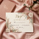 This design utilizes a sophisticated, formal layout centered around delicate watercolor illustrations of dusty rose blossoms and muted green eucalyptus leaves. The composition sits on a soft cream background , establishing a warm, inviting contrast with the elegant, sweeping script used for the primary headline and the highly legible classic serif font for the event details.This is a flat printed image with a faux metallic foil effect, not actual raised material.