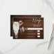 Boho floral et bois de plume crâne de vache mariage rustique de bois rsvp. Ce rsvp de mariage de style bohème dispose d'un crâne de vache avec des fleurs et des plumes.
