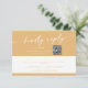 Cette carte rsvp chic boho jaune marigold et code QR est parfaite pour un mariage minimaliste. Le design bohème moderne et coloré, audacieux et jaune vif, présente une calligraphie rustique simple au style unique mais classique. Donnez à vos invités la possibilité de poster dans leur carte rsvp, ou simplement répondre en ligne avec cette carte de réponse de code QR. Entrez votre adresse Web dans la section de code QR du modèle et le code QR sera automatiquement mis à jour et lié à votre site.