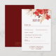 Correspondance de l'élégante carte "RSVP" sur Arrière - plan de luxe bordeaux. Texte entièrement personnalisable. Vous pouvez trouver des versions plus classiques ou modernes dans la Collection. Elégant rouge-crème or moderne chaleureux Design décoré avec de luxueux orchidées dessinées à la main, Feuilles de palmiers et laiton de Pampas disponibles dans différentes Variations avec bordeaux foncé ou Arrière - plan blanc antique. Faire-part de mariage et papeterie parfaits pour les Mariages chic boho, Mariages automne / automne / été, mariages à thème botanique d'or rouge, mariages à thème orchidées. Entièrement personnalisable avec vos textes, photos et détails personnels. S'il vous plaît trouver d'autres modèles et variantes dans le magasin "Tout Chic Design" sous la collection "Boho chic red orchid fall" et n'hésitez pas à me contacter si vous avez des questions. Je suis heureux d'aider à tout moment. Correspondance de papier à lettres Mariage complet avec enveloppes et stickers d'adresse disponible plus décoration de table, décoration de fête, paquets cadeaux et accessoires préférés, et plus encore. Disponible avec des roses roses roses rousses ou rustique chic avec seulement des botaniques séchés, comme l'herbe de pampas et les feuilles de palme.