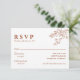 Une calligraphie simple et élégante Carte RSVP Mariage de automne Floral. Comme vous le voyez, il a brûlé orange et blanc avec ligne d'art boho contour chic floral. Minimaliste et chic avec typographie orange brûlée et botaniques.