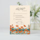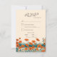 Cette belle bohème bohème avec choix de repas carte de mariage RSVP, dispose d'un dessin à l'encre de fleurs sauvages de pavots aux couleurs chaudes rustiques, orange et turquoise, inspirée de la technique d'art japonais traditionnel ukiyo-e ou impression de blocs de bois japonais. Personnalisez cette belle carte RSVP avec votre propre texte.