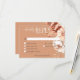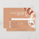 Donnez le ton pour votre journée spéciale avec notre carte de réponse boho rustique mariage enchanteresse avec choix de dîners. Doté d'un arrière - plan doux en terre cuite, ce design est orné d'un étonnant jet de fleurs d'aquarelle et d'herbes séchées. Des teintes délicates de brun de pêche, de crème et de feuillage vert sauge clair, entrelacées avec des herbes séchées beige clair, créent un mélange harmonieux de charme rustique et d'élégance bohème. Idéal pour un été ou un mariage de automne qui vous est unique. Créé par Simply Farmhouse Press.