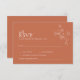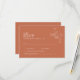 Cette carte de mariage RSVP a un arrière - plan en terre cuite chaleureux avec du texte blanc dans un mélange élégant de serif et de polices sans-serif propres. Des lignes de remplissage simples rendent la disposition claire et facile à utiliser, tandis qu'une délicate illustration florale sur le côté apporte une touche romantique. Le design est minimaliste, moderne et parfaitement adapté à un ensemble de papeterie mariage coordonné