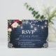 Mariage rustique Bleu Chaîne Lumières Mason Jars Lace Aquarelle Bourgogne Marsala Bleu Floral Carte RSVP