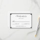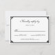 Créez vos propres cartes RSVP de mariage dans un style calligraphique classique associé à une police élégante de style casquette. Vous pouvez customiser toutes les couleurs de cette conception pour correspondre à votre palette de couleurs mariage. Une bordure minimaliste de style grec noir pour vos cartes "Kindly Response by".