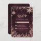 Cette belle aquarelle Bourgogne avec la carte RSVP de mariage d'hiver Rose Gold présente de jolis flocons de neige et des branches bordant un arrière - plan bourgogne riche et adorable. Parfait pour vos mariages d'hiver et de vacances ou événements. Le texte peut être customisé pour correspondre à n'importe quel événement.