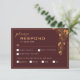 Cette carte de réponse RSVP Burgundy foncé et feuillage doré Élégant a un fond burgundy foncé qui est orné d'un motif floral doré complexe et d'une typographie moderne. La combinaison du burgundy riche et de l'or scintillant crée une esthétique élégante et luxueuse. Affichez la collection sur cette page pour trouver des articles assortis. ♥Personnalisez-la avec vos informations. ♥ Si vous souhaitez modifier le style de police, la couleur ou l'emplacement du texte, cliquez simplement sur le bouton "Personnaliser davantage". ♥ Si vous avez besoin d'aide ou si vous avez une demande spéciale concernant ce design ou tout autre dans mes magasins, n'hésitez pas à me contacter via "CONTACTER LE VENDEUR" et je serai ravi de vous aider !