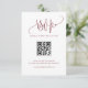 Laissez vos invités RSVP avec cette carte de mariage personnalisable RSVP. Il présente une calligraphie bordeaux audacieuse et une typographie serif simple. Personnalisez cette carte de réponse mariage moderne en ajoutant vos coordonnées de mariage. Cette carte RSVP de code QR est parfaite pour n'importe quelle saison ou thème mariage.