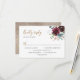Conçu pour coordonner avec notre collection de mariage Rustique Bourgeon de Fleur de Navy, cette carte de réponse personnalisable présente des feuilles d'eucalyptus aquarelles et des florales délicates de bourgogne et de navy, associées à une police de caractères script tendance en or et une police de caractères sérif classique en noir. Pour apporter des modifications avancées, accédez à l'option "Cliquez pour personnaliser davantage" sous Personnaliser ce modèle.