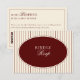 Carte de réponse RSVP ovale rayures ivoire et bordeaux foncé avec QR code - Répondre en ligne - Carte de réponse pour site web de mariage