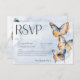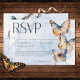 Profitez du charme de la nature avec notre carte de réponse mariage aux papillons enchanteresse avec détails, mais pas d'options de dîner. Les papillons aquarelles peints à la main donnent vie à un spectacle captivant de couleurs riches. De belles tonalités beige, brun chaud, rouille terre cuite, bleu turquoise et crème créent un sentiment d'élégance cosy. Un lave-linge bleu et poussiéreux en toile de fond est parfait. Ce design incarne parfaitement l'essence de la nature, invitant vos invités à célébrer votre histoire d'amour au milieu de sa beauté. Créé par Simply Farmhouse Press.