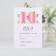 Une carte RSVP avec un arc brillant avec contour doré et une pierre rose facettée au centre. Un glamour de luxe féminin.